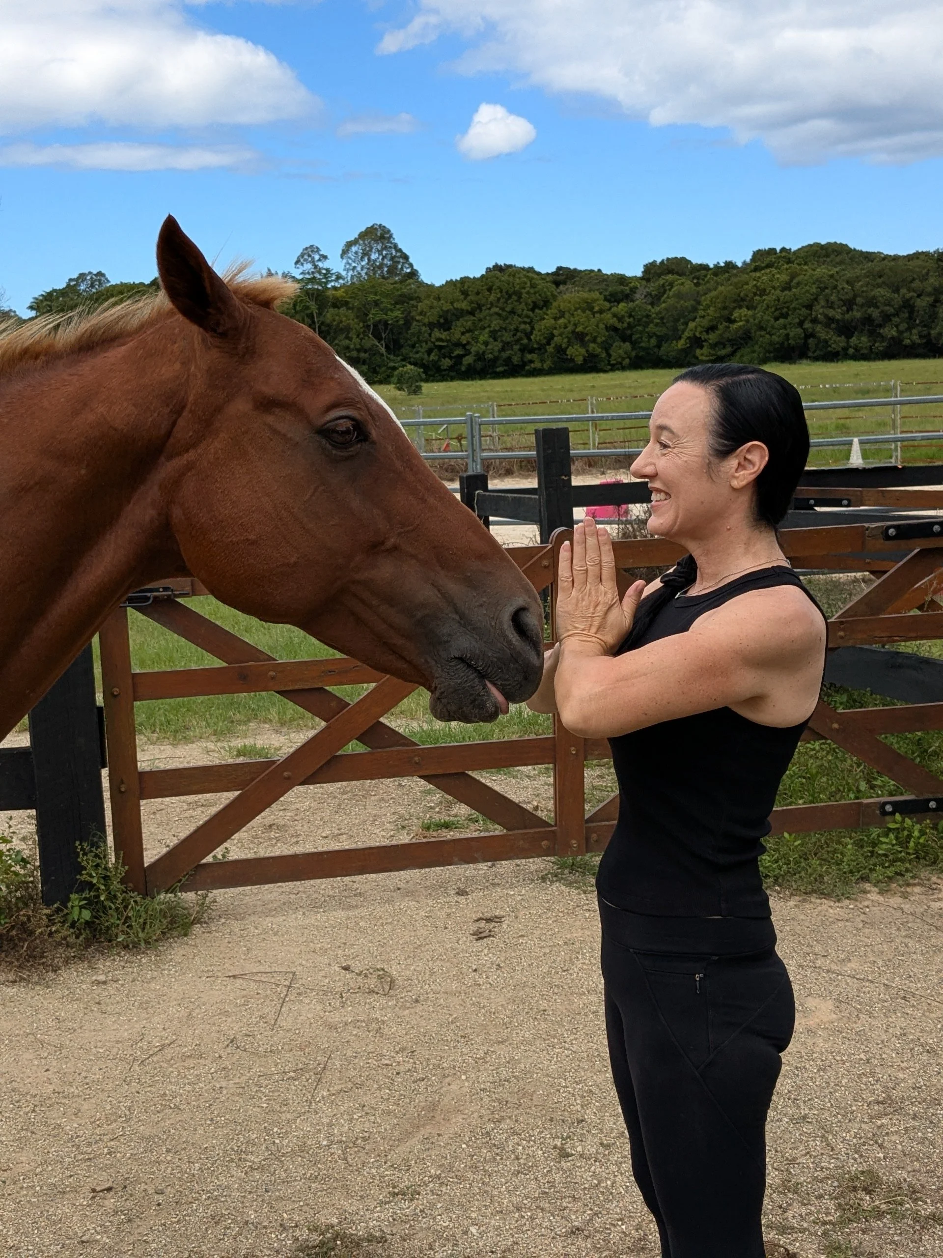 Embodied Equine Sessions are a personalised, in-paddock experience — blending Pilates, yoga, yin, breathwork, meditation, and equine-assisted learning, all held within your own space, alongside your horse.